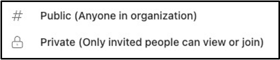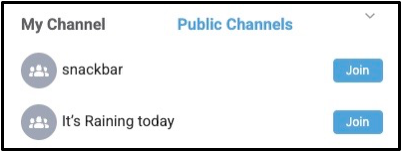 Note: Public and Private channels can be distinguished by the lock icon, which indicates a private channel.