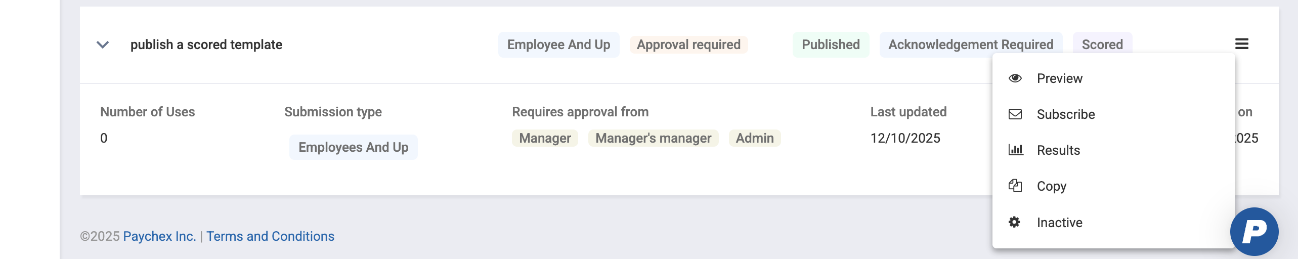 Administrators can manage email notifications for each form template through the subscription feature. Subscribing ensures that relevant workflow events trigger email alerts to the appropriate users.