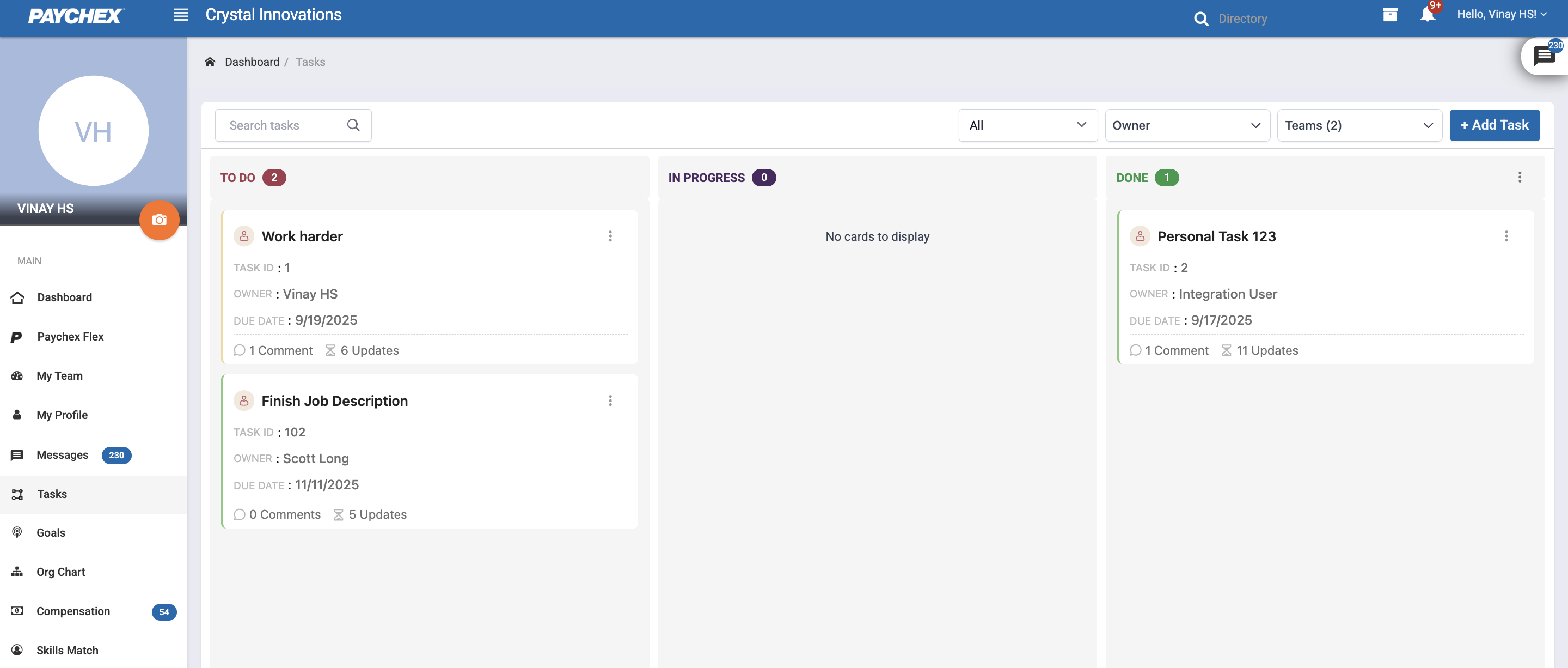 Tasks module provides users with a consolidated view of all tasks assigned to them, including personal tasks and tasks generated from workflows or team activities. It is designed to help users track progress, manage workload, and complete required actions efficiently.