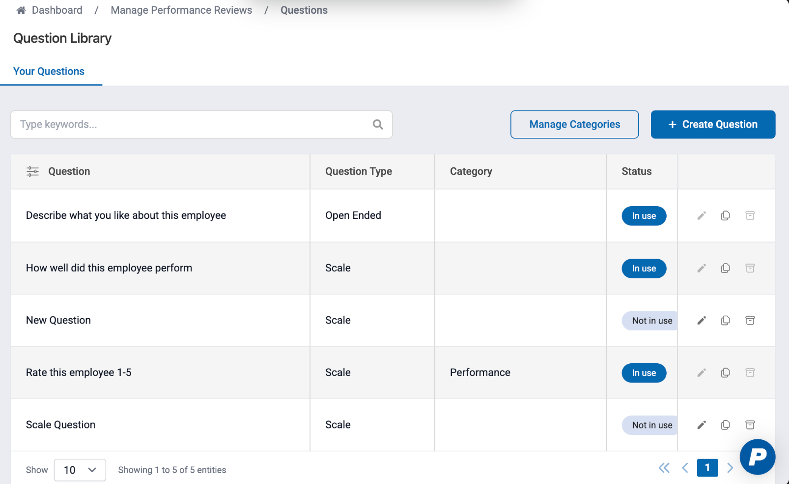 Dashboard > Manage Performance Reviews > Question BankClick on the Create Question button.