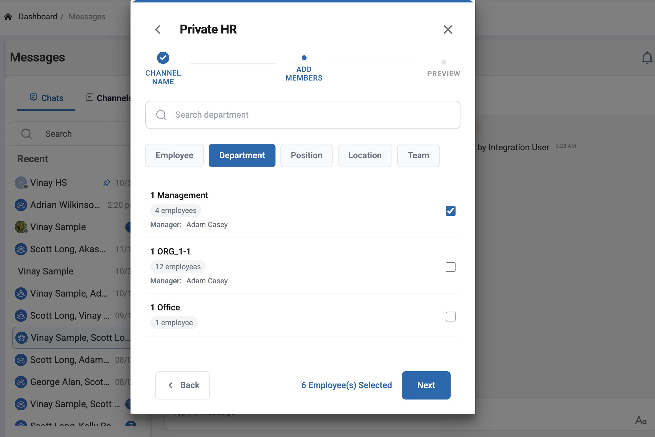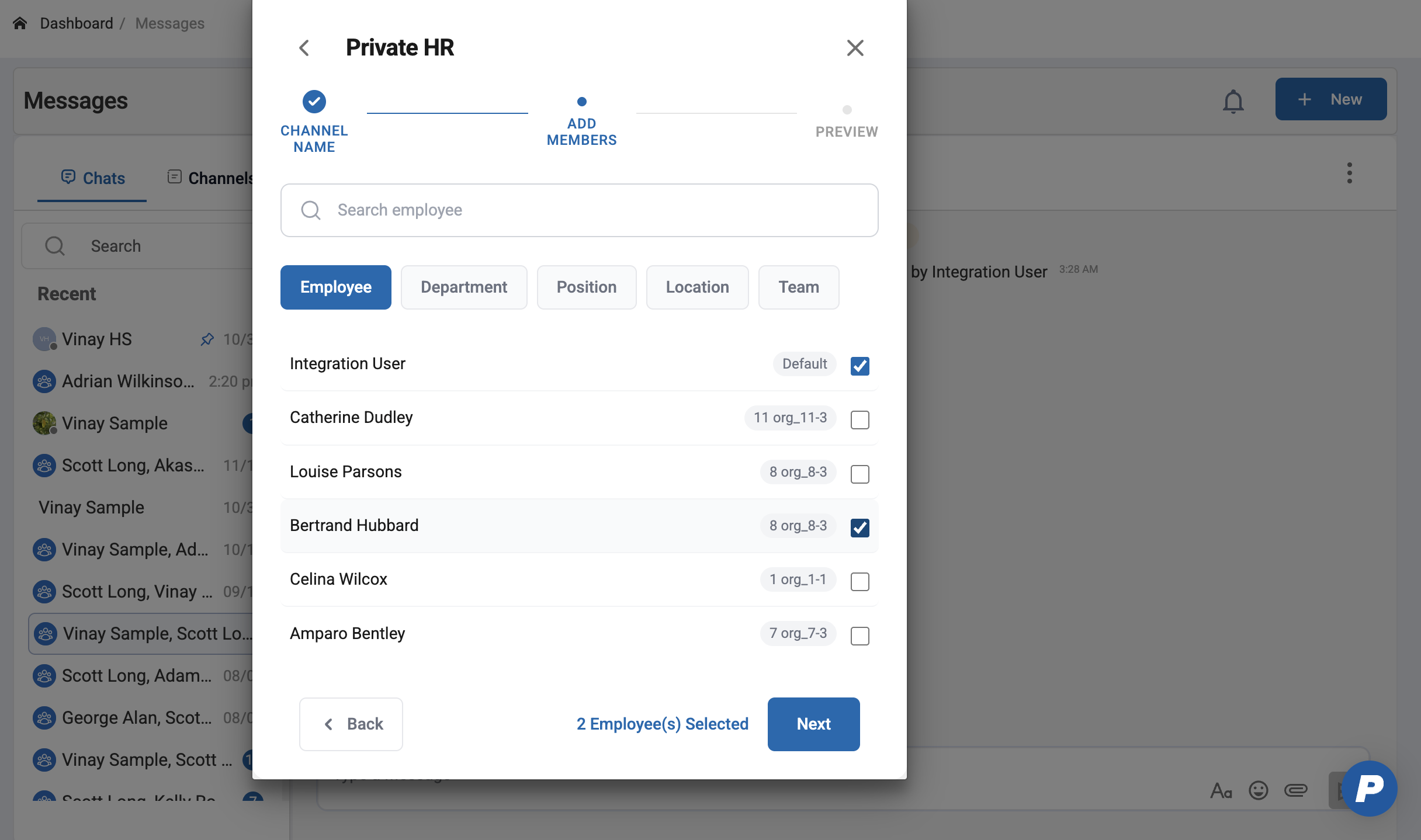 Users can still be manually added to a channel by selecting single/multi users from Employee filter