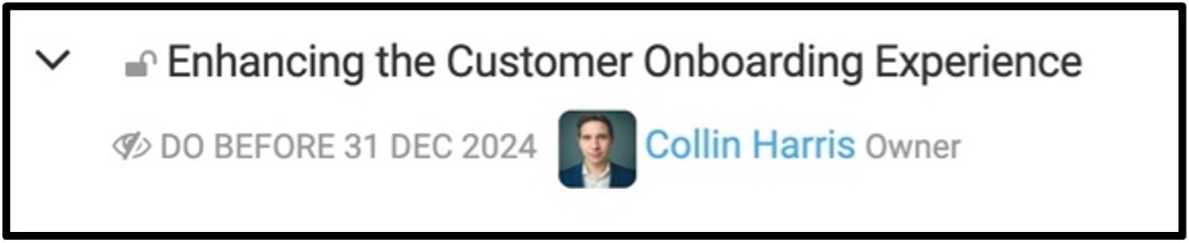Our employee "Collin" has been given the goal of "Enhancing the Customer Onboarding Experience".