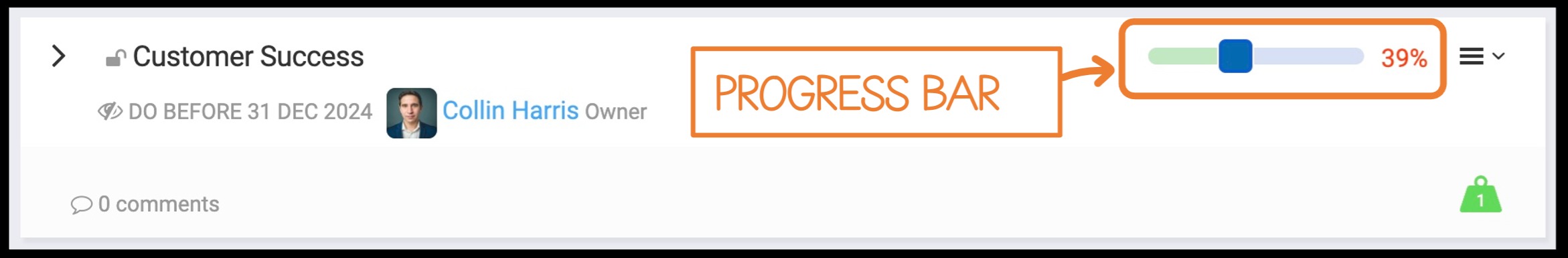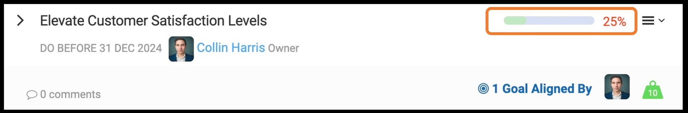 If you have set a weight to the Goal, this will factor in how much progress has been made in regard to completing the overall goal.